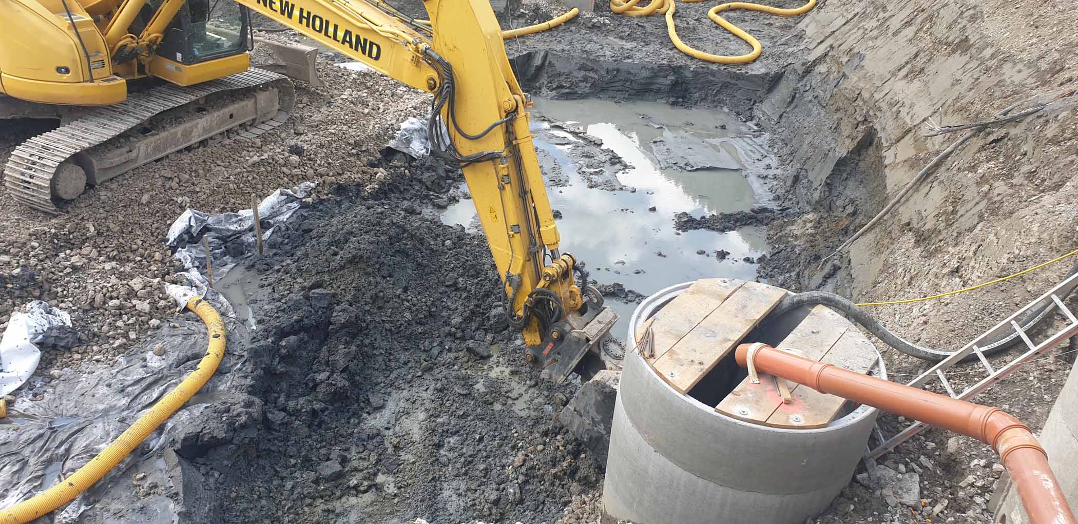 Kanalaushubarbeiten jeder Größe werden durch unser Team kompetent durchgeführt und auf Wunsch stellen wir sämtliche Materialien wie z.B. Bettungsmaterial, Planiermaterial, Frostkoffer bereit.